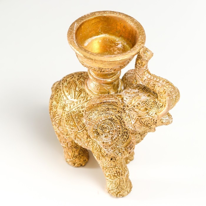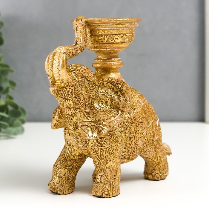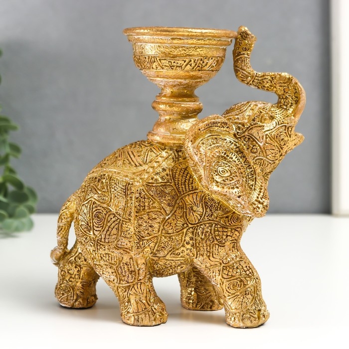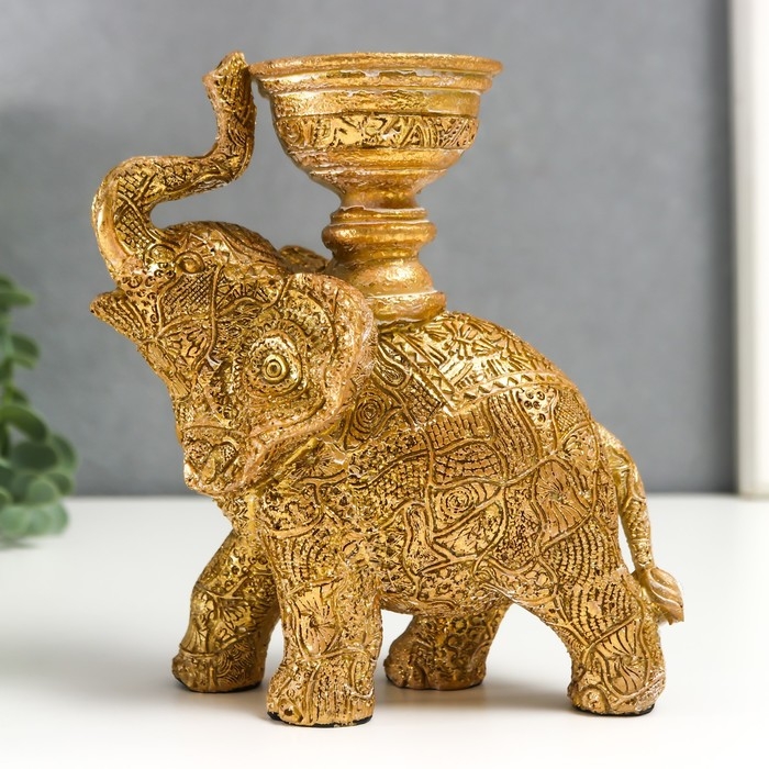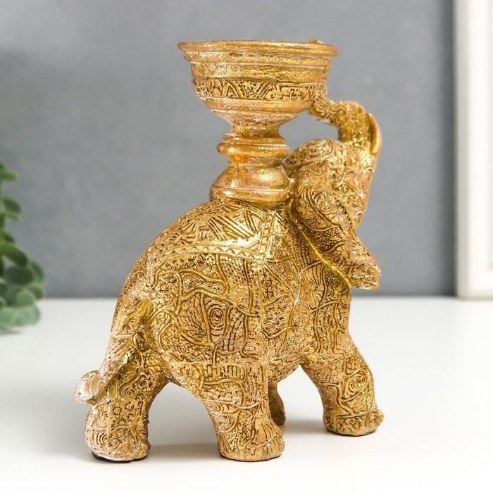 Сувенир полистоун подсвечник "Слон с наскальными рисунками" золотистый 16х7,5х13 см