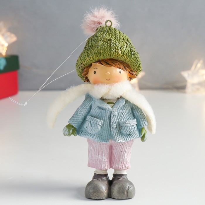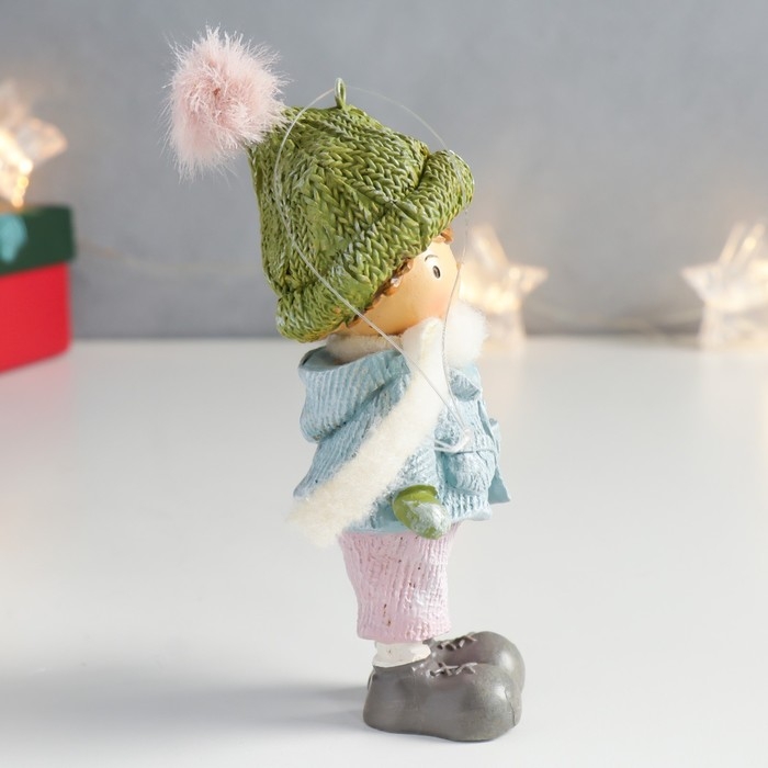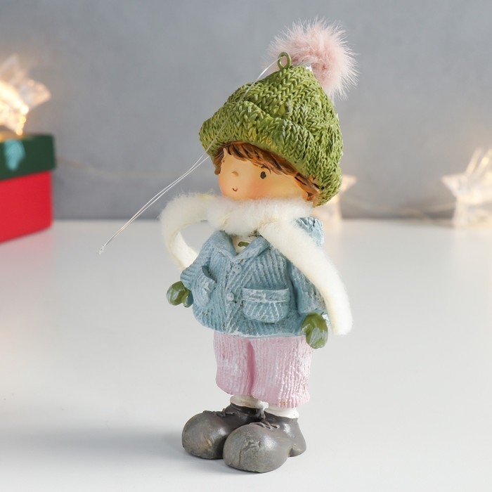 Сувенир полистоун подвеска "Мальчик в зелёной шапке и голубом пиджаке" 6,5х5х13 см