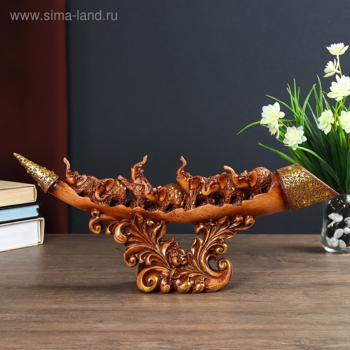 Сувенир полистоун "Семь слонов на бивне" под дерево 18,5х8х44 см
