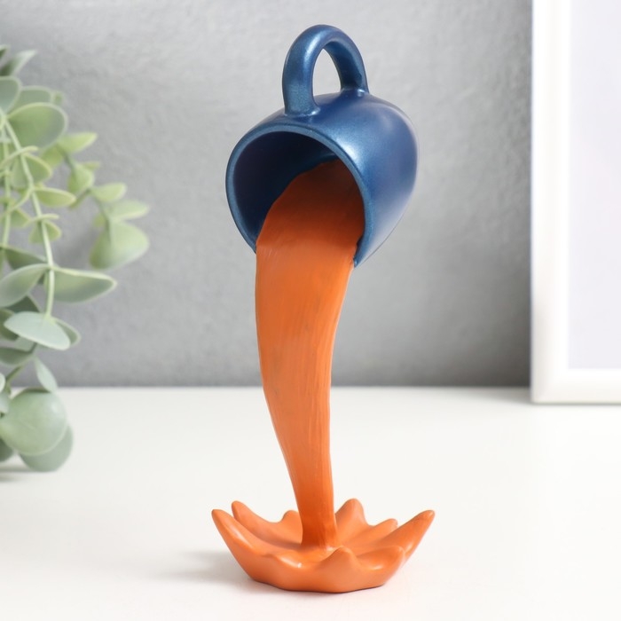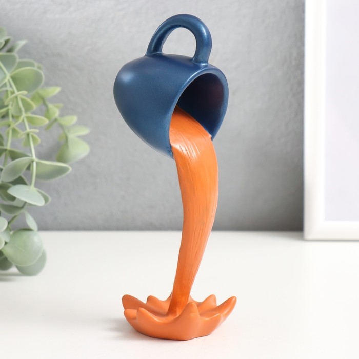 Сувенир полистоун "Синяя чашка жидкое золото - брызги" 15х5,5х8 см