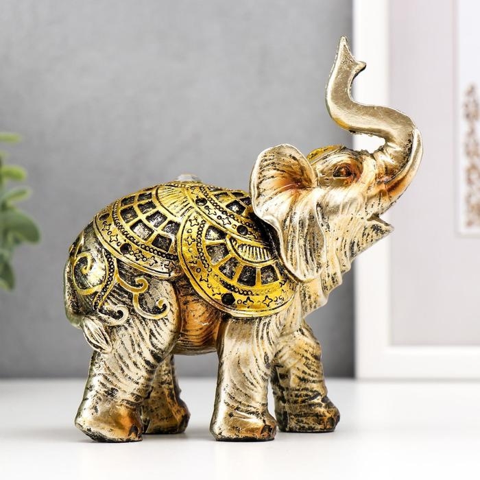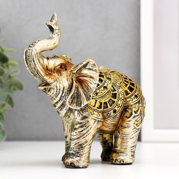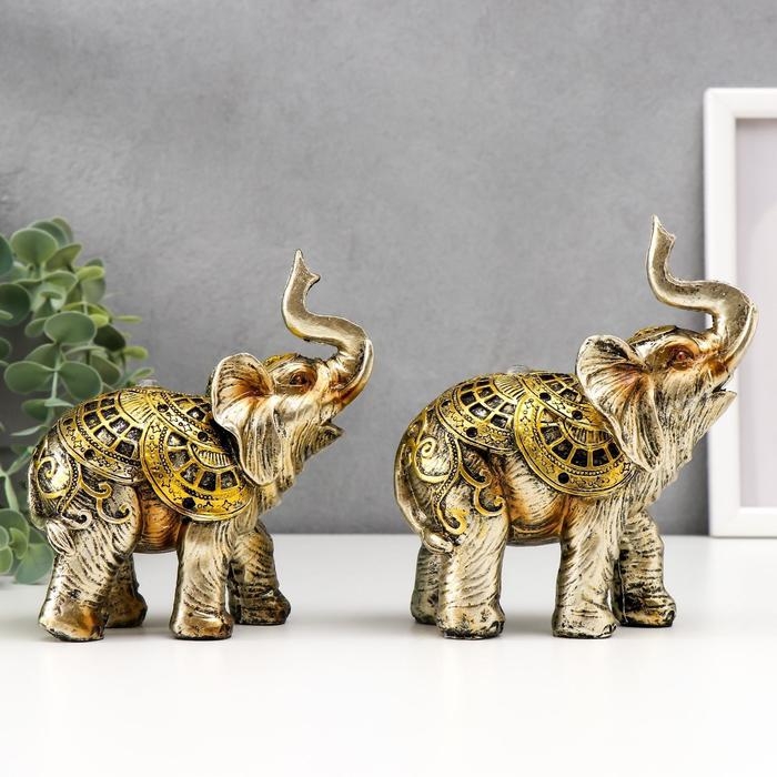 Сувенир полистоун "Слон с рисунками на попоне" набор 2шт. 14,5х13х5,7 см