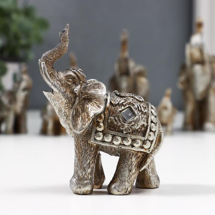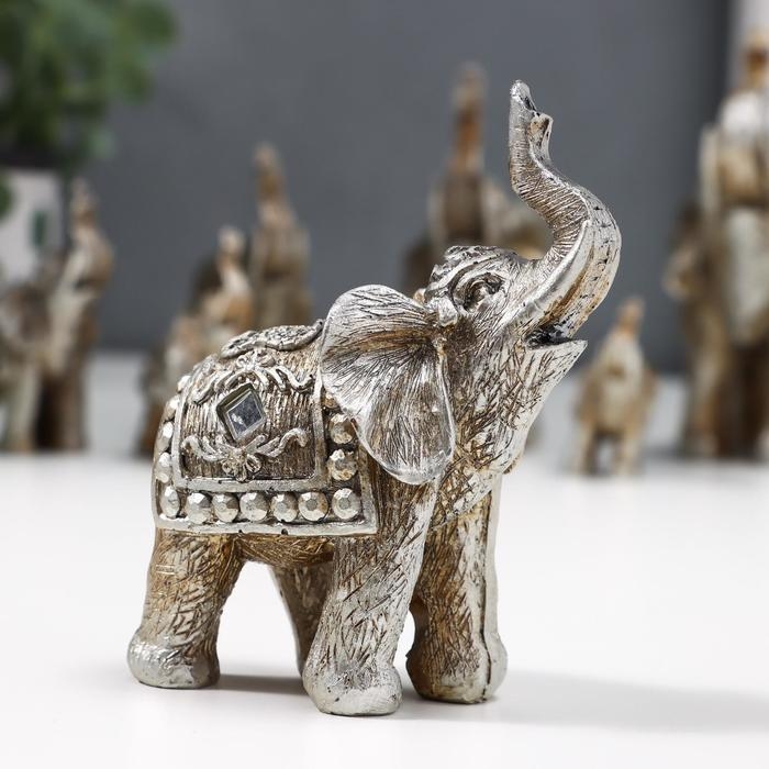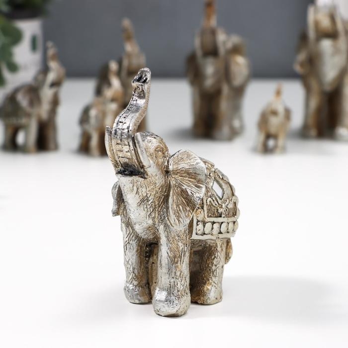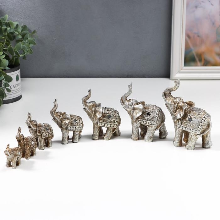 Сувенир полистоун "Слоны серебристая попона" набор 7 шт h=12; 10,5; 9,5; 8; 7; 6; 5 см