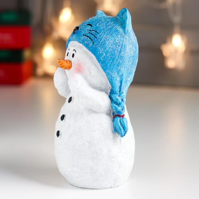 Сувенир полистоун "Снеговичок в шапке-кота, восторженный" 17,5х9х9,5 см