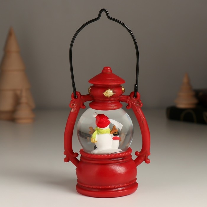 Сувенир полистоун водяной шар "Дед Мороз/Снеговик в фонарике" МИКС 7х5х10 см