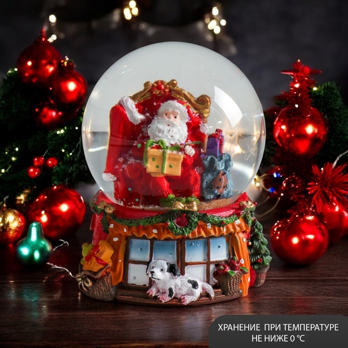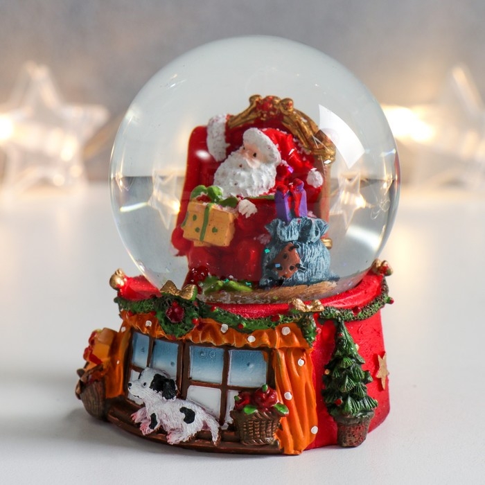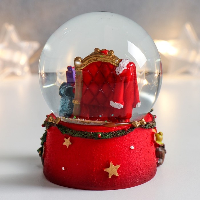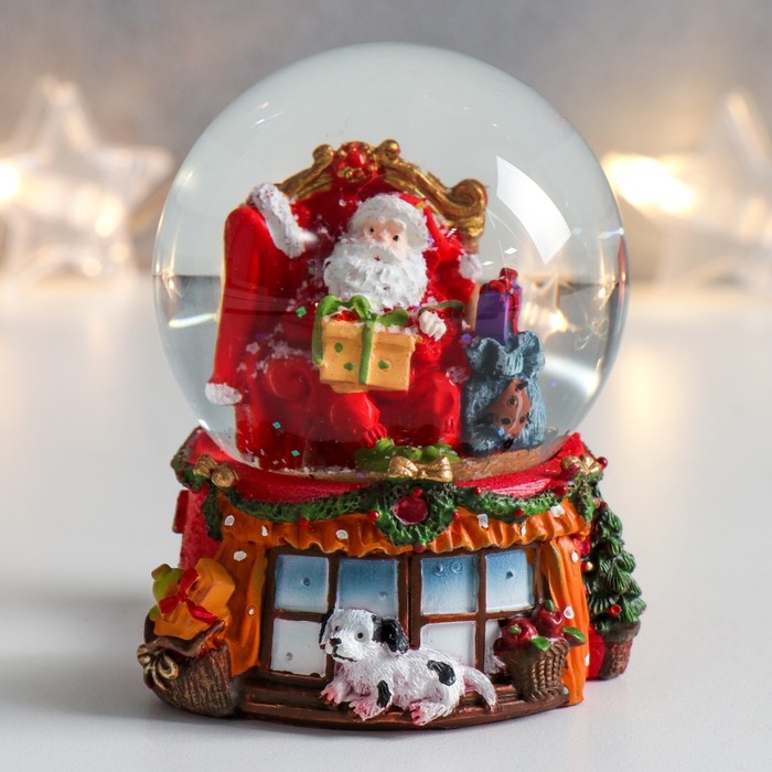 Сувенир полистоун водяной шар "Дед Мороз в кресле с подарками" 7х6,7х8,8 см