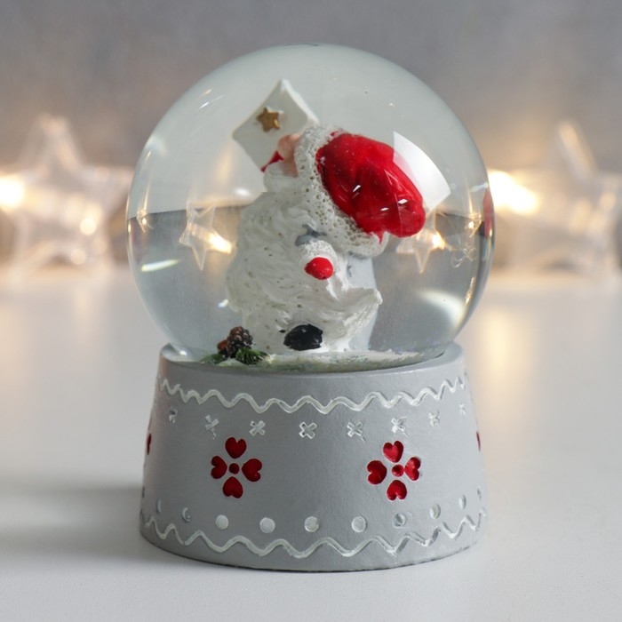 Сувенир полистоун водяной шар "Дед Морозик с длинной бородой" 6,5х6,5х8,5 см