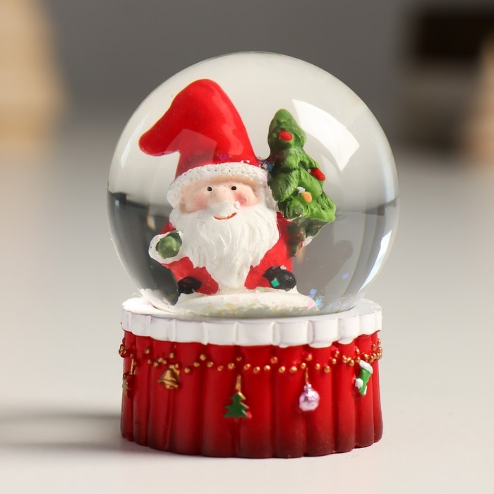 Сувенир полистоун водяной шар "Дедушка Мороз с ёлочкой" 4,5х4,5х6,5 см