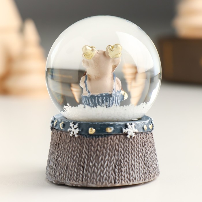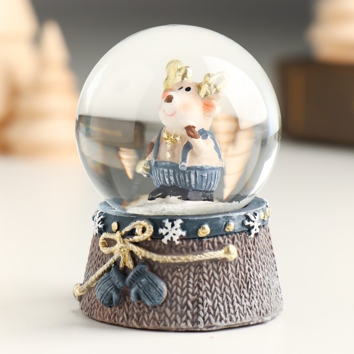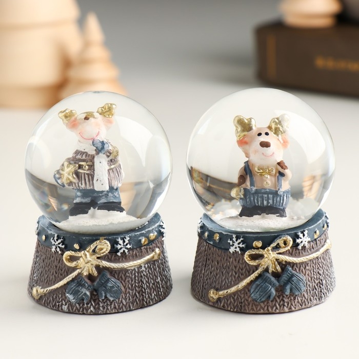 Сувенир полистоун водяной шар "Лосик с золотыми рожками в сине-сером" МИКС 4,5х4,5х6,2 см