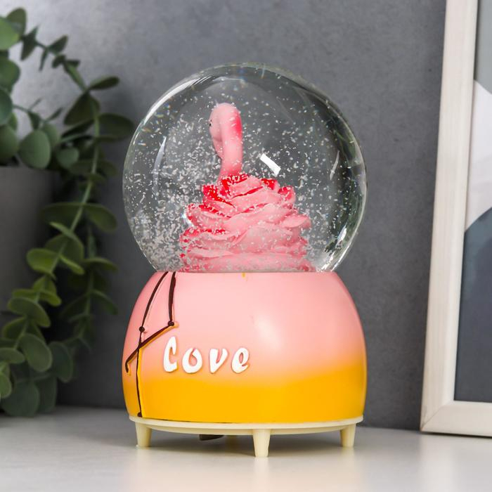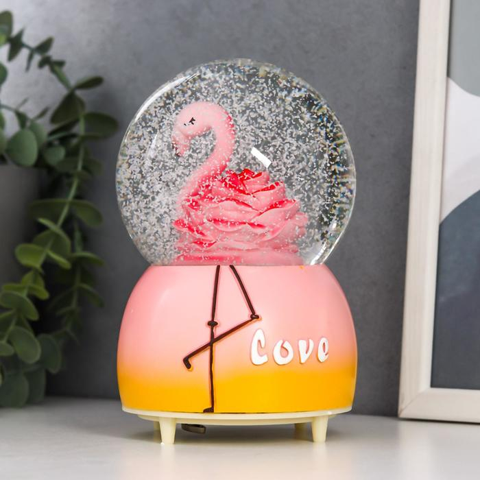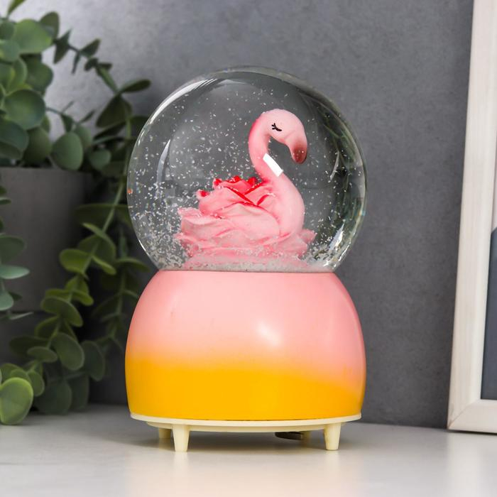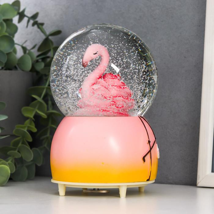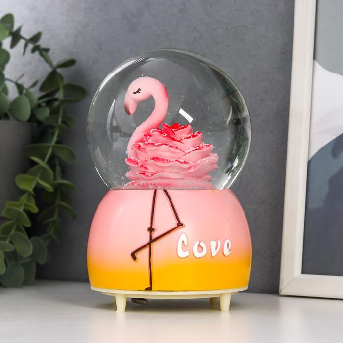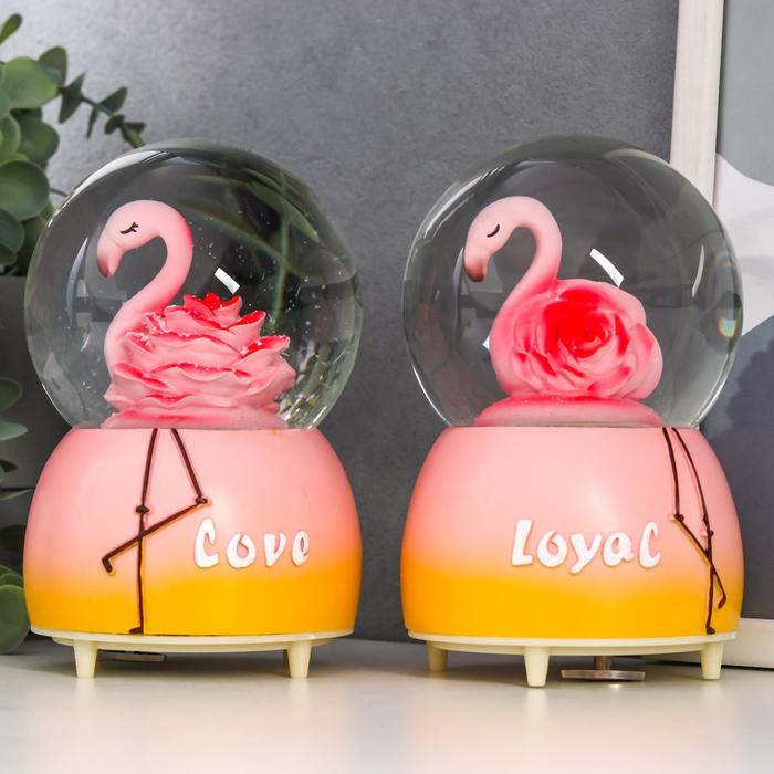 Сувенир полистоун водяной шар музыка "Фламинго-цветок" крутится d=10 см МИКС 15,5х10х10 см