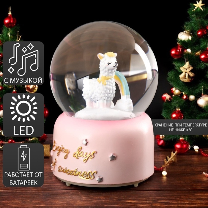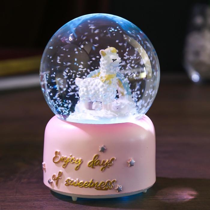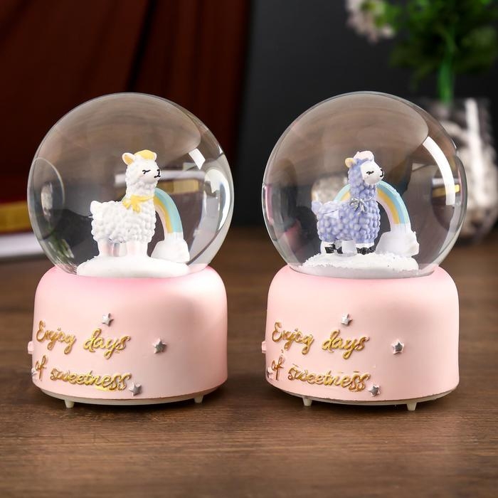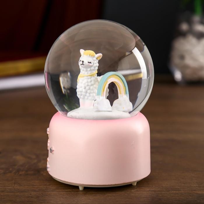 Сувенир полистоун водяной шар музыка, свет "Лама и радуга" МИКС 12,8х8х8 см