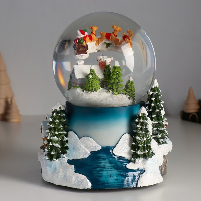 Сувенир полистоун водяной шар музыка, свет "Полёт Мороза" крутится d=12 см 16х15,5х19,5 см 1033444