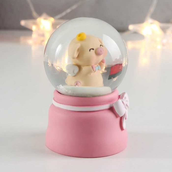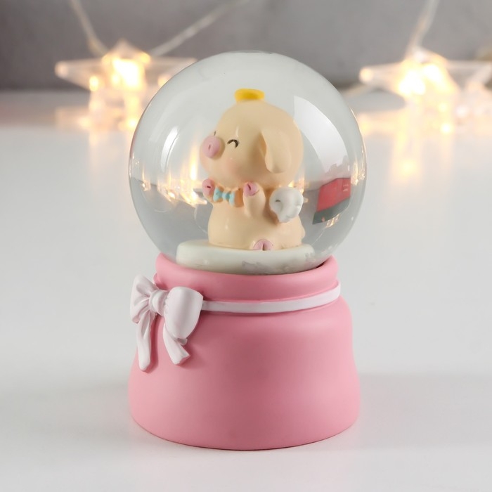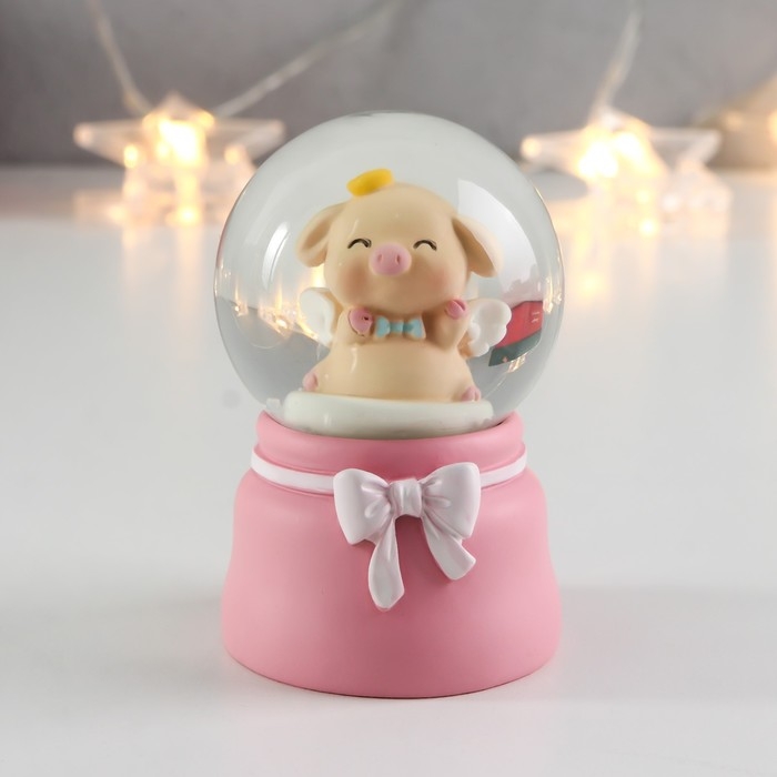 Сувенир полистоун водяной шар свет "Хрюша с крылышками" МИКС d=4,5 см 7х4,5х4,5 см