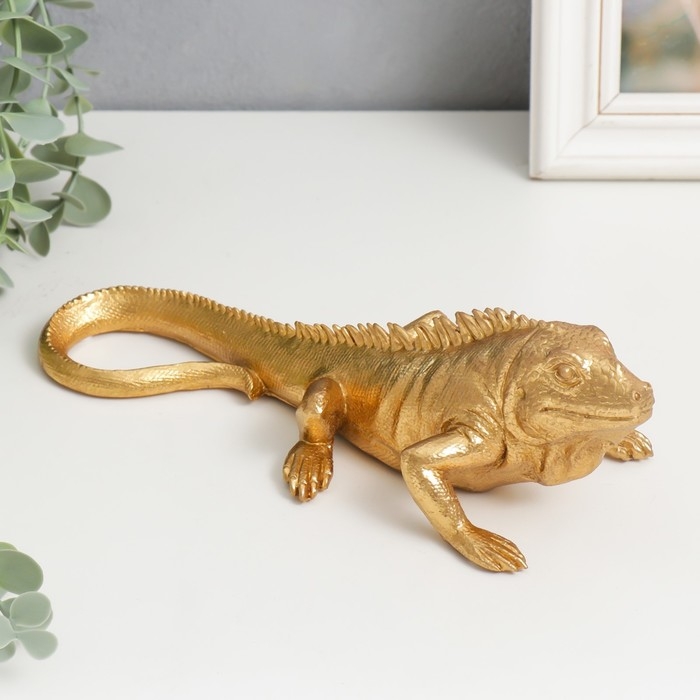Сувенир полистоун "Золотая игуана" 7х9,5х25 см