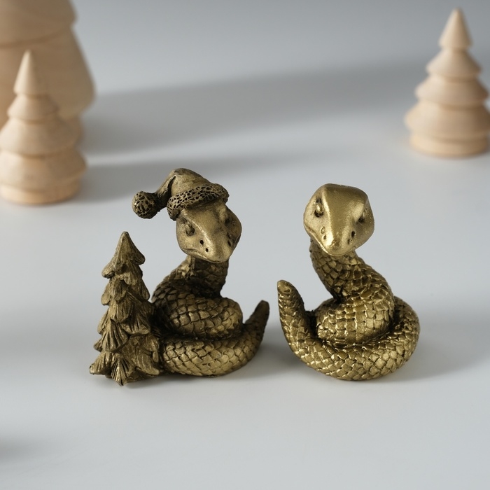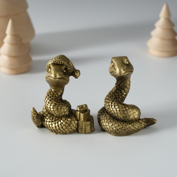 Сувенир полистоун "Золотистая змейка" МИКС 3х3х5 см