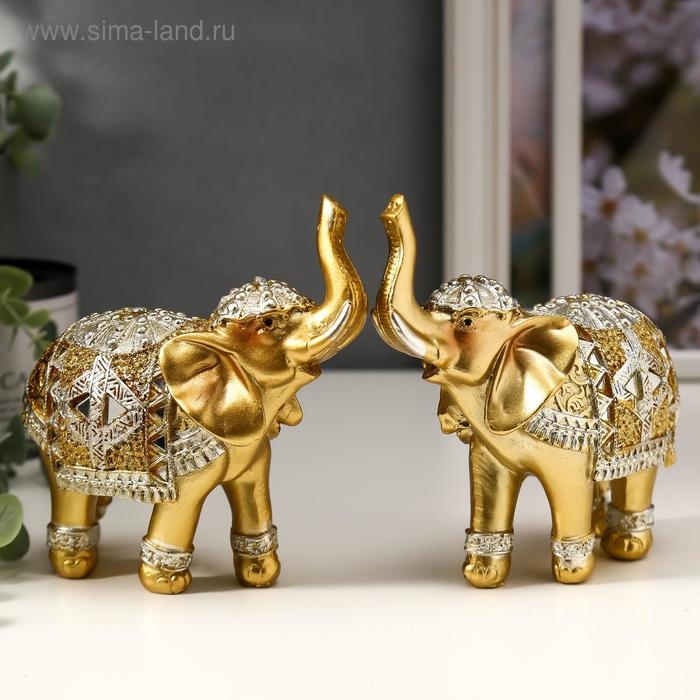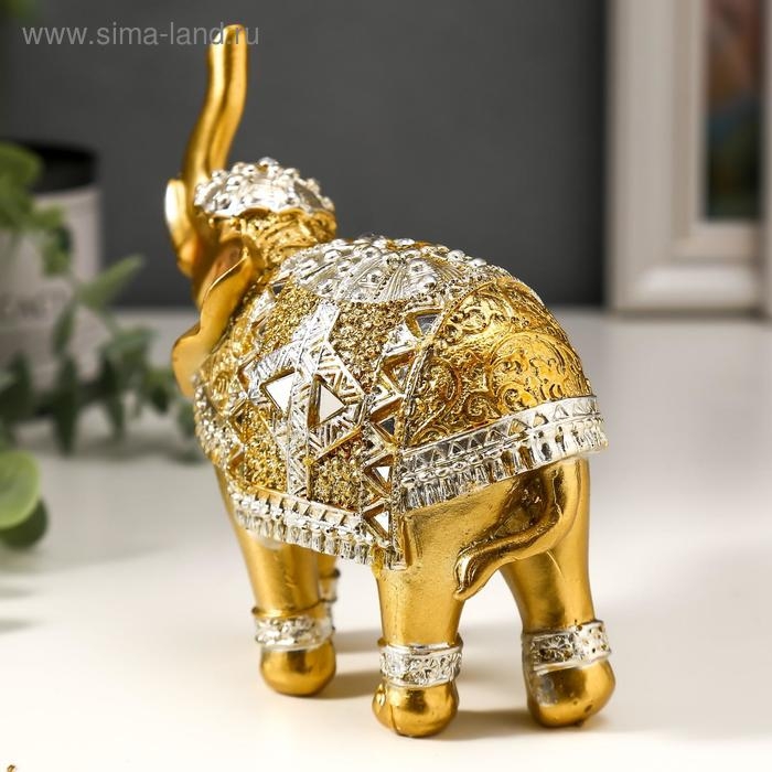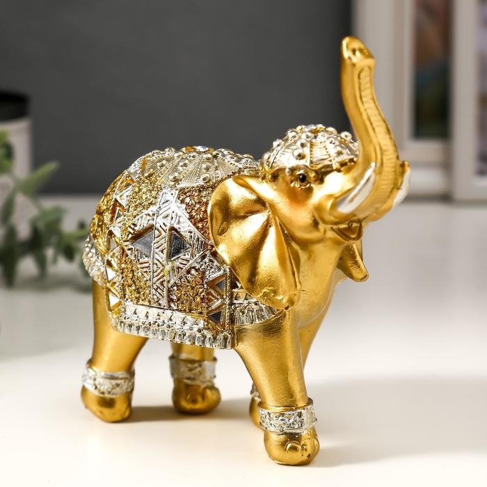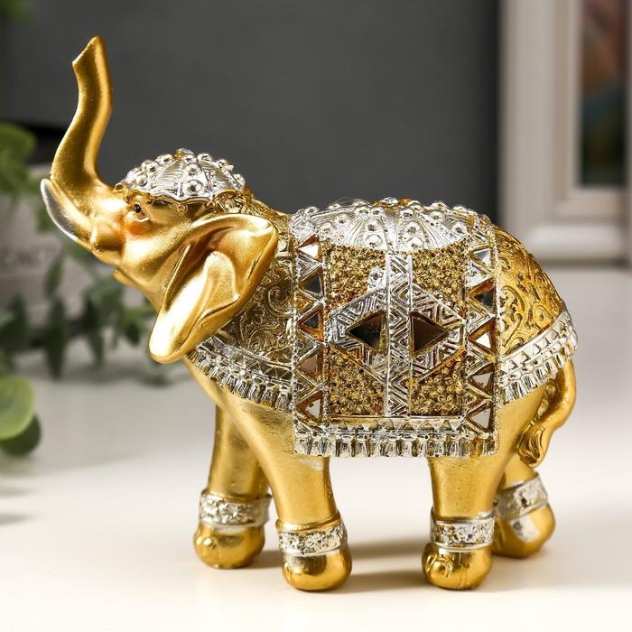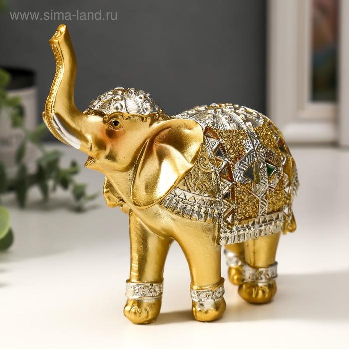 Сувенир полистоун "Золотой слон в зеркальной попоне" 13,5х14х6 см МИКС