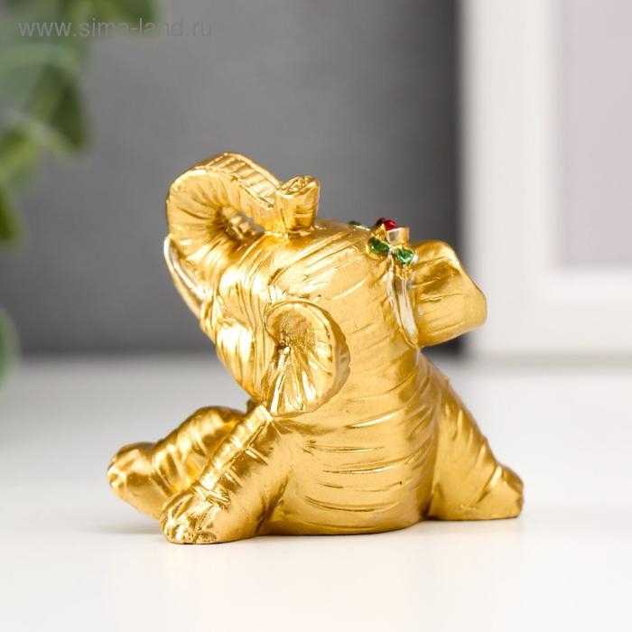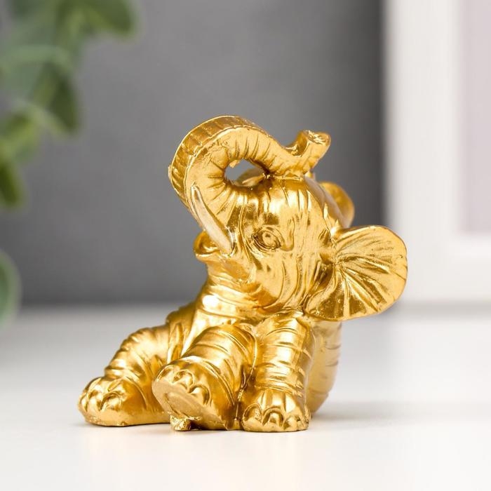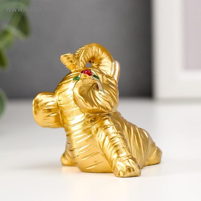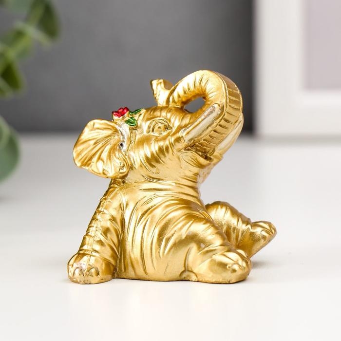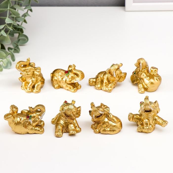 Сувенир полистоун "Золотой слонёнок с цветочком" набор 8 шт 5,5х4х4 см