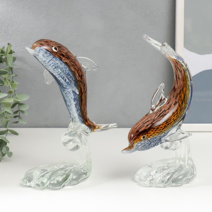 Сувенир стекло "Дельфин на волне" под муранское стекло МИКС 20,5х10 см