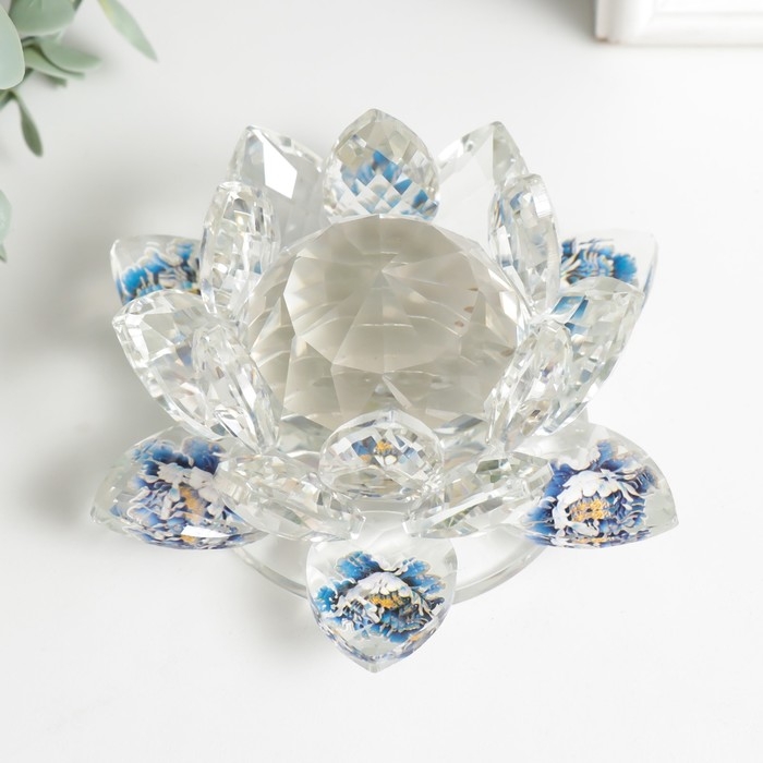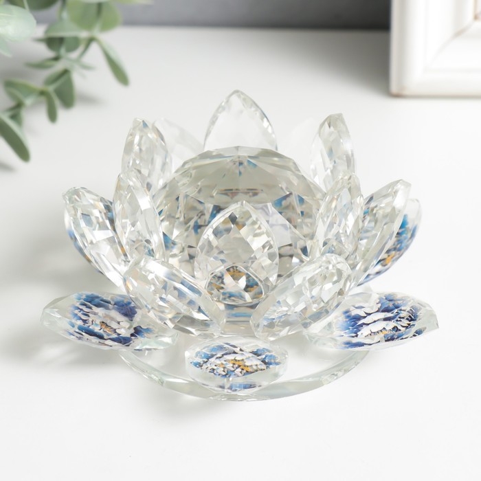 Сувенир стекло "Лотос прозрачный, на лепестках синие цветы" 7х13,5х13,5 см