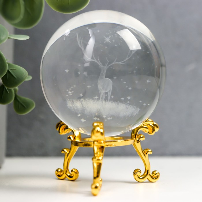 Сувенир стекло "Олень" d=6 см ажурная подставка 8,5х6х6 см
