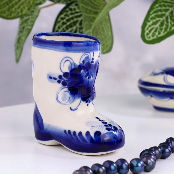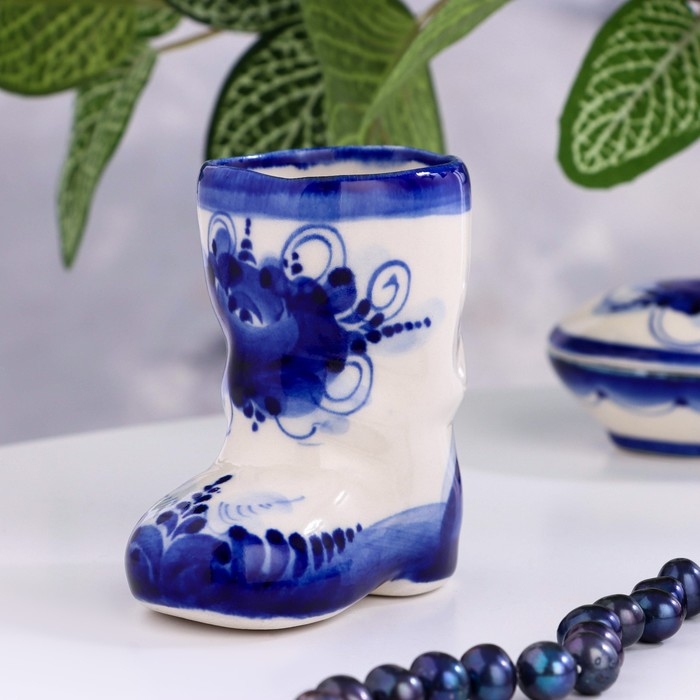 Сувенир, стопка "Валенок", h=8см, 100мл, гжель, фарфор