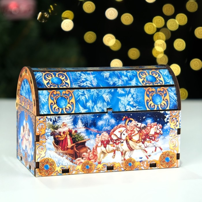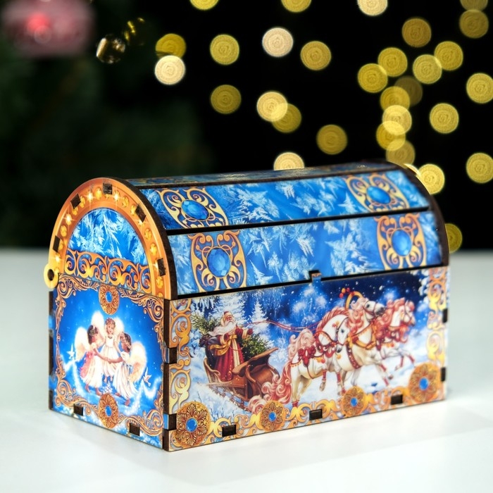 Сувенир сундук - копилка с новогодними игрушками (3 шт.) "Ежик", 13 х 7,5 х 8,5 см