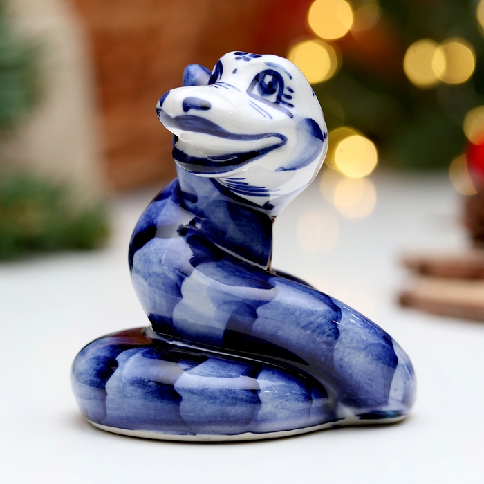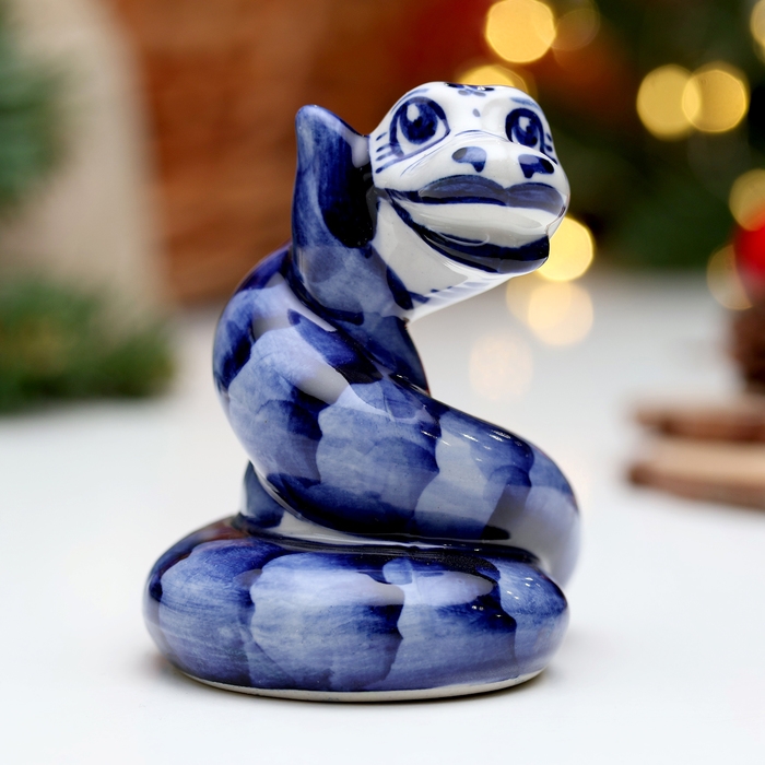 Новый год. Сувенир символ года "Змей Гоша", гжель, 4 см