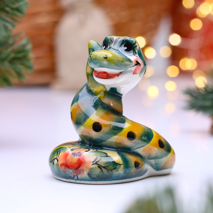 Новый год. Сувенир символ года "Змея Рио", гжель