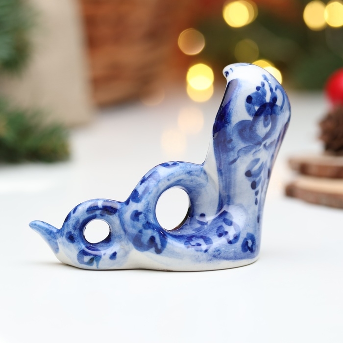 Новый год. Сувенир символ года "Змея Маруся", гжель, цвет, 4,5 см