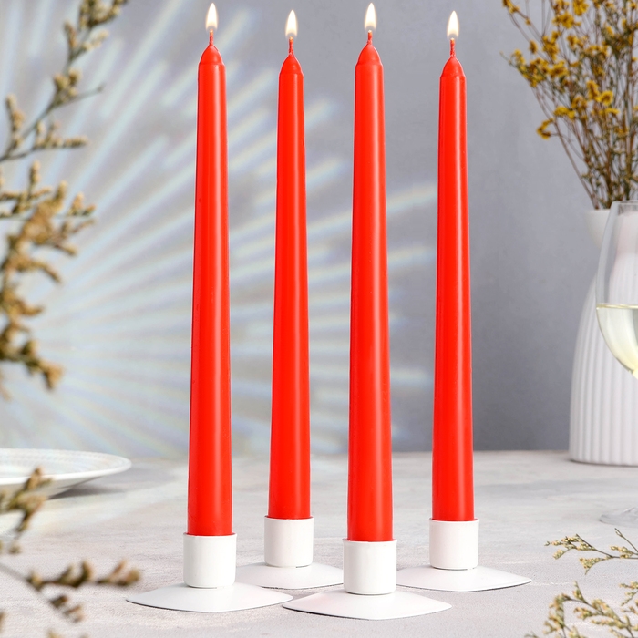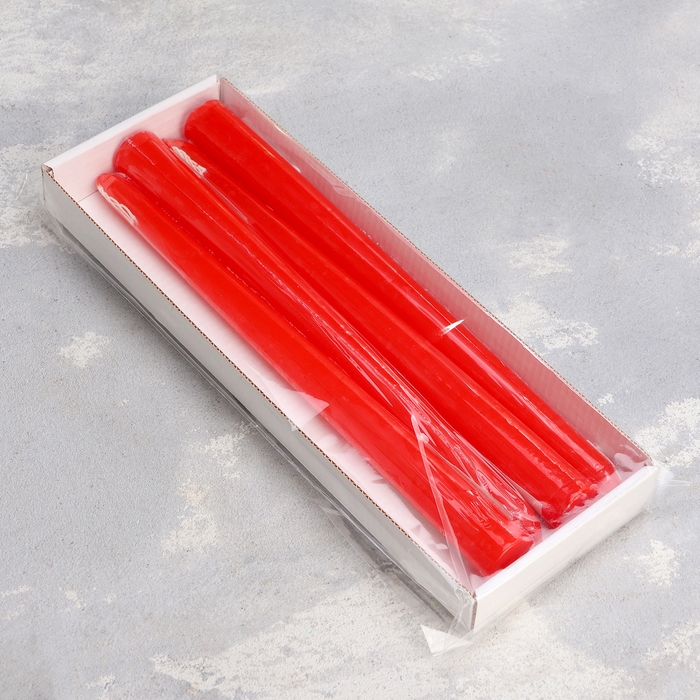 Свеча античная, 2,2х25 см, 4 шт лакированная красная