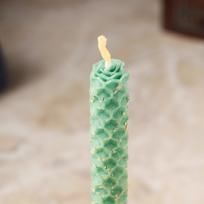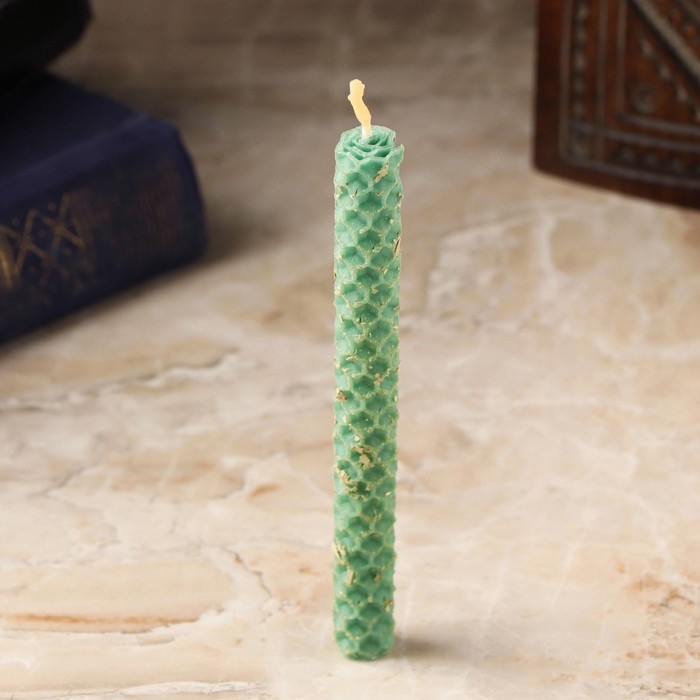 Свеча из вощины с эвкалиптом "От плохих людей и злых духов" , 13х1,7 см, 1 ч, зеленый