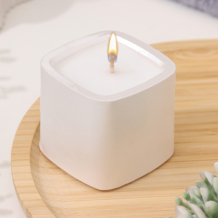 Свеча "Квадрат. Мрамор" в подсвечнике из гипса малый,5х4,5 см,белый перламутр
