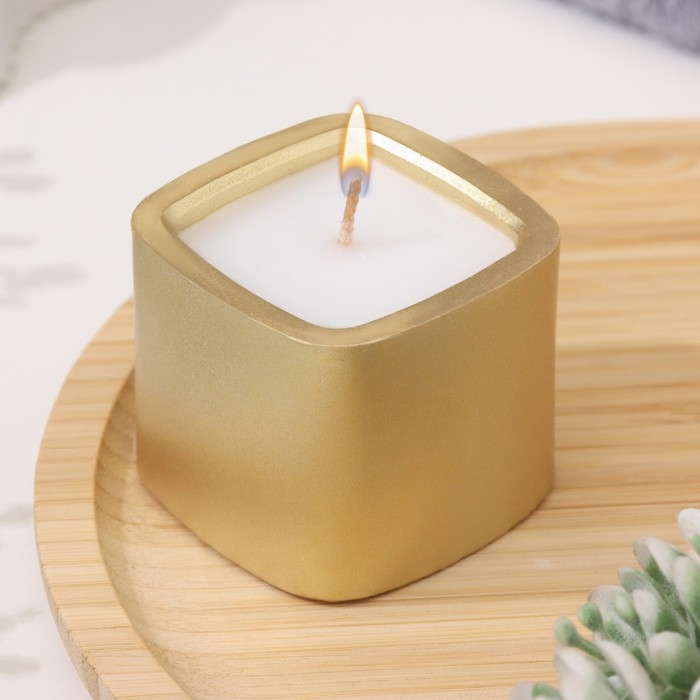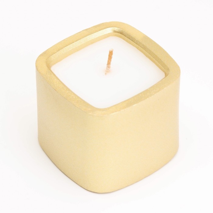 Свеча "Квадрат. Мрамор" в подсвечнике из гипса малый,5х4,5 см,золото