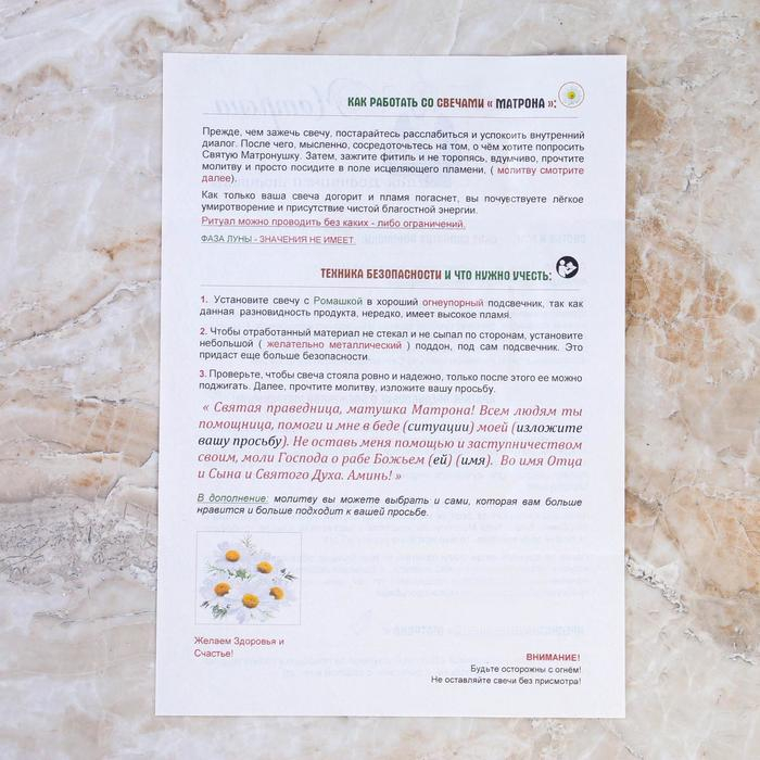 Свеча магическая медовая с ромашкой «Молитва святой Матроне», 12 штук