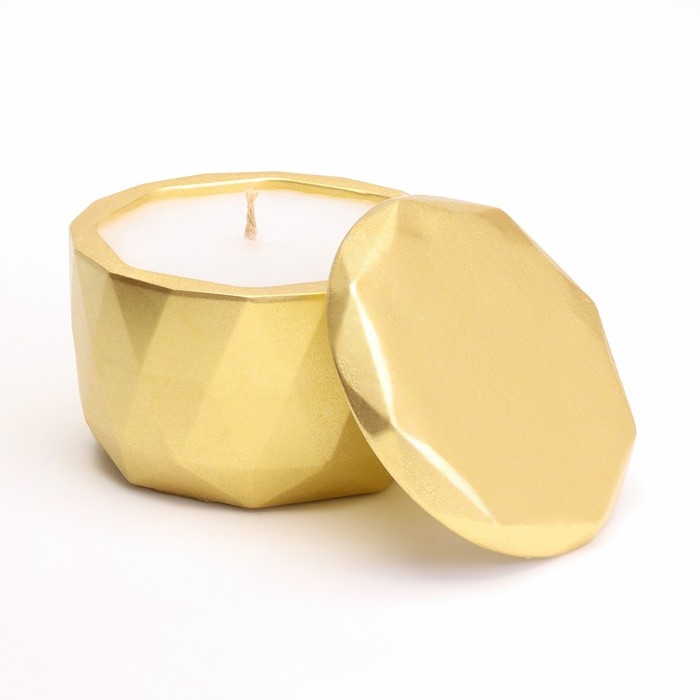 Свеча "Мрамор" в подсвечнике из гипса с крышкой, 8,5х6см, золото
