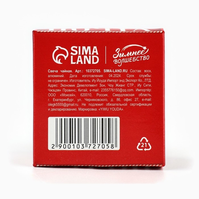 Свеча новогодняя чайная «Новый год: Много подарков», диам 4 см