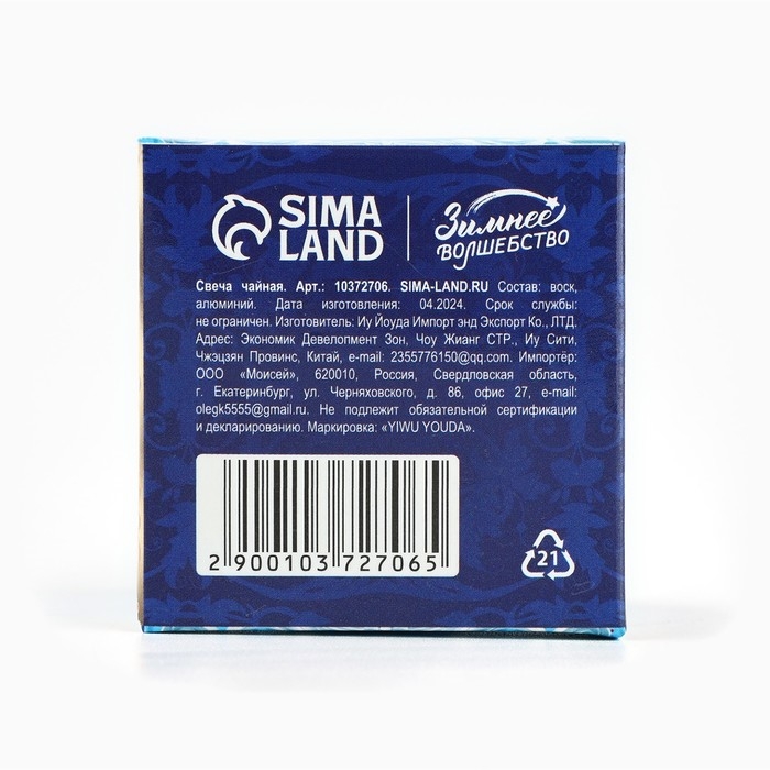 Свеча новогодняя чайная «Новый год: Новый путь», диам 4 см