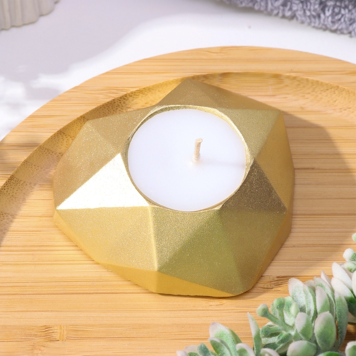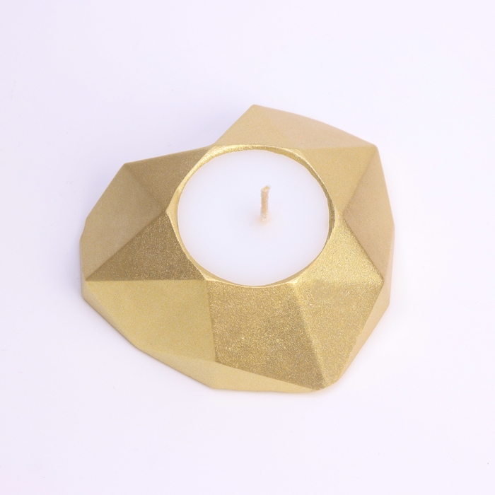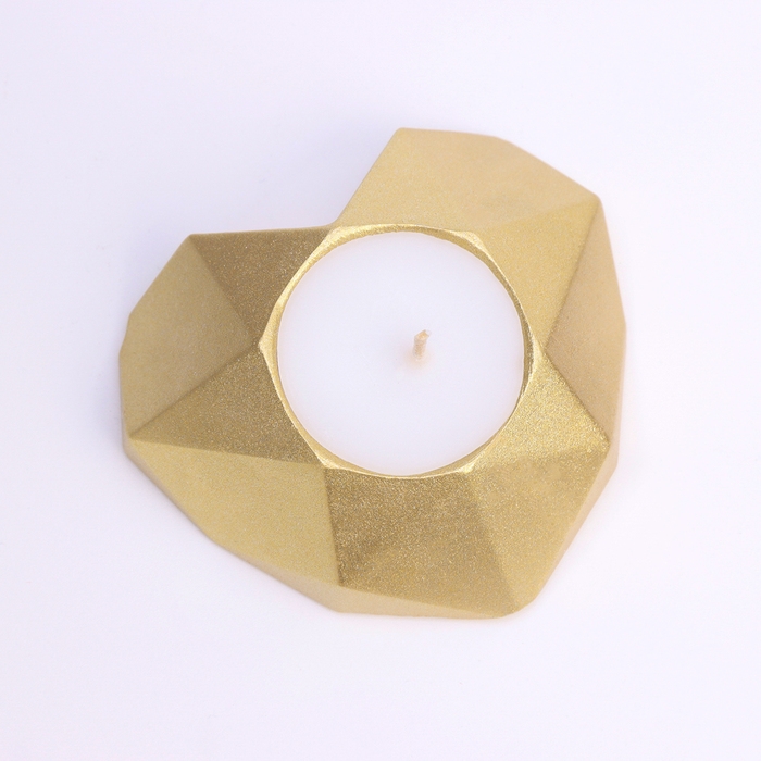 Свеча "Сердце. Мрамор" в подсвечнике из гипса с гранями, 8х7,5х2,5см,золото