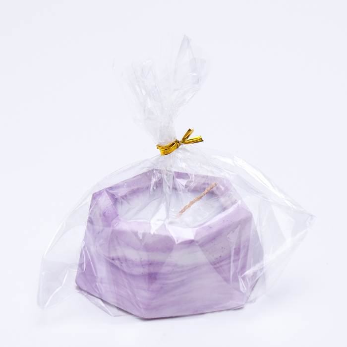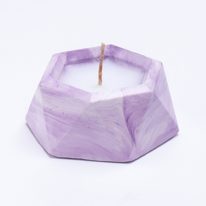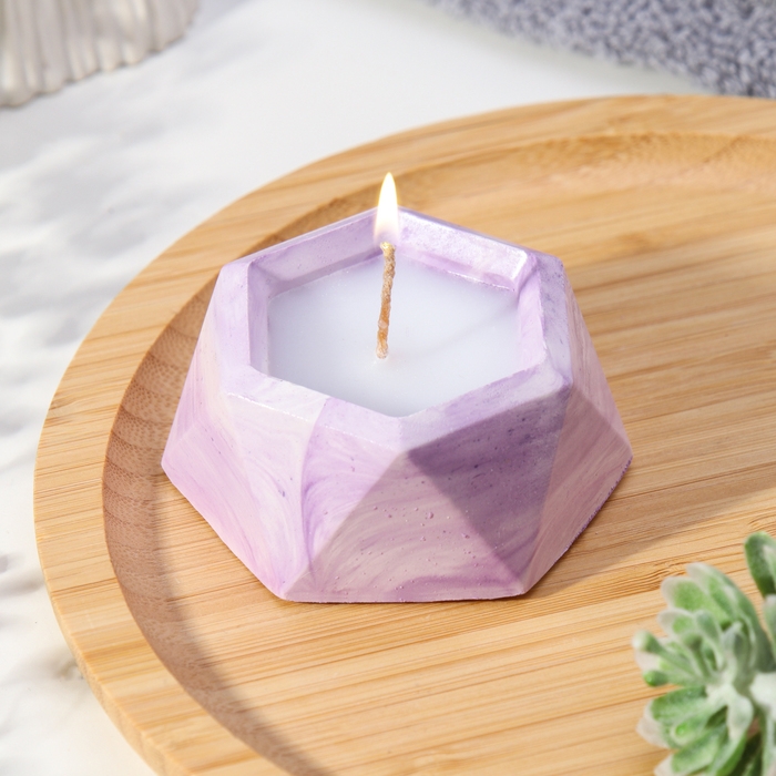 Свеча "Шестиугольник. Мрамор" в подсвечнике из гипса малый,7х3,5см,мрамор с фиол. полосками