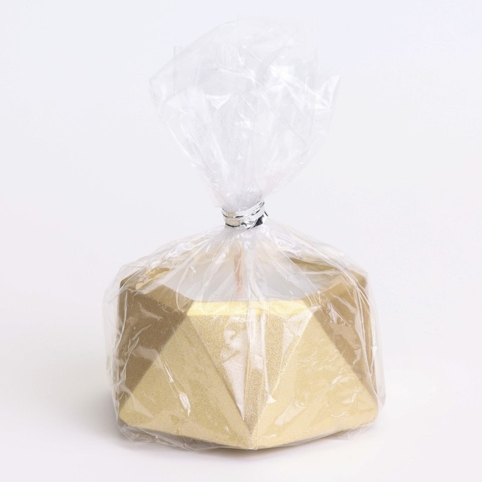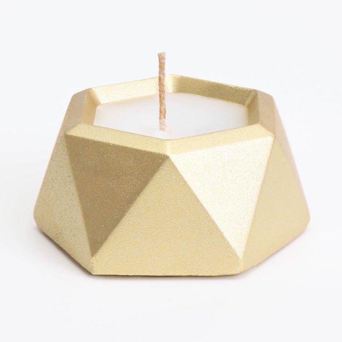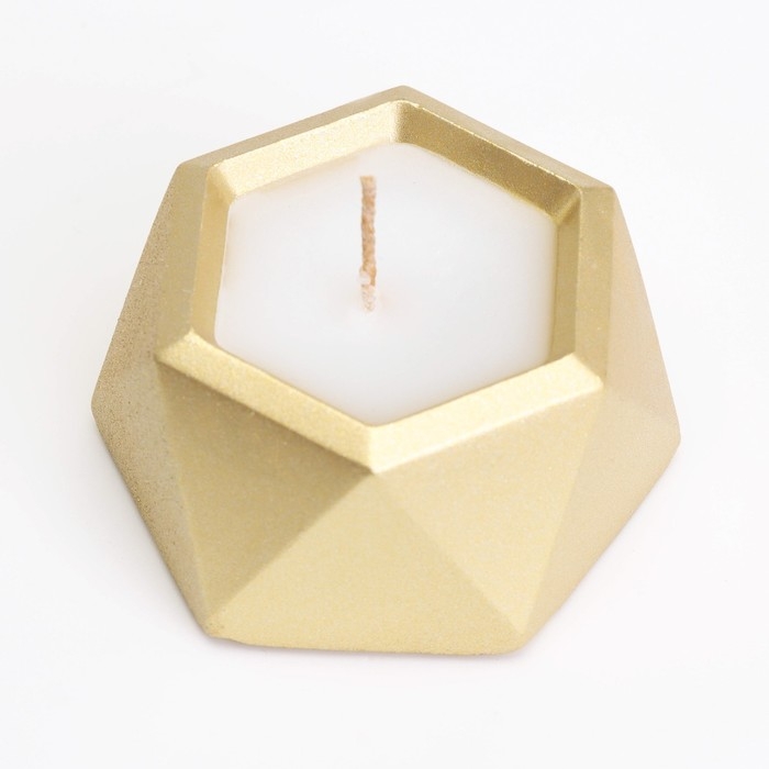 Свеча "Шестиугольник. Мрамор" в подсвечнике из гипса малый,7х3,5см,золото