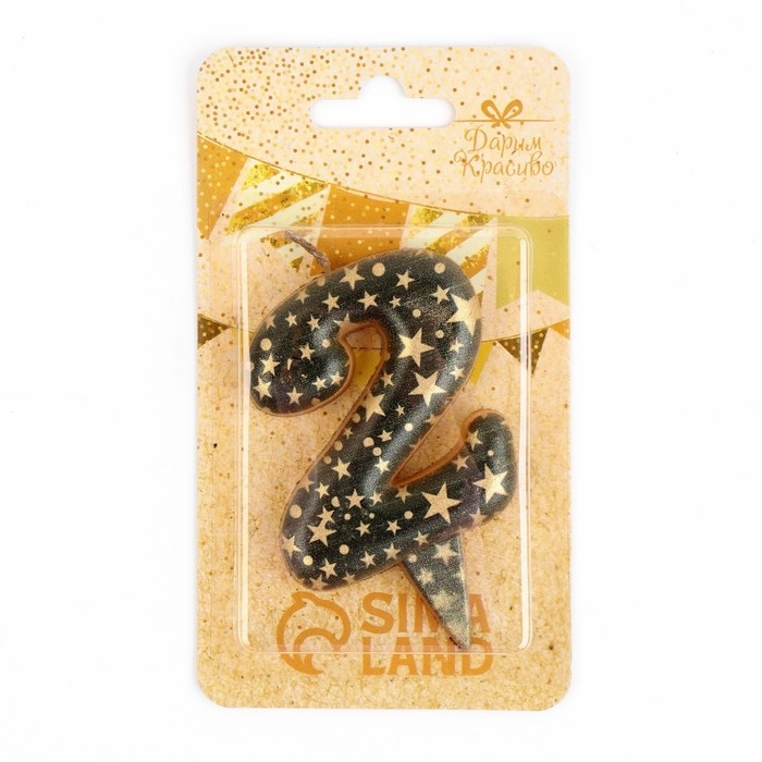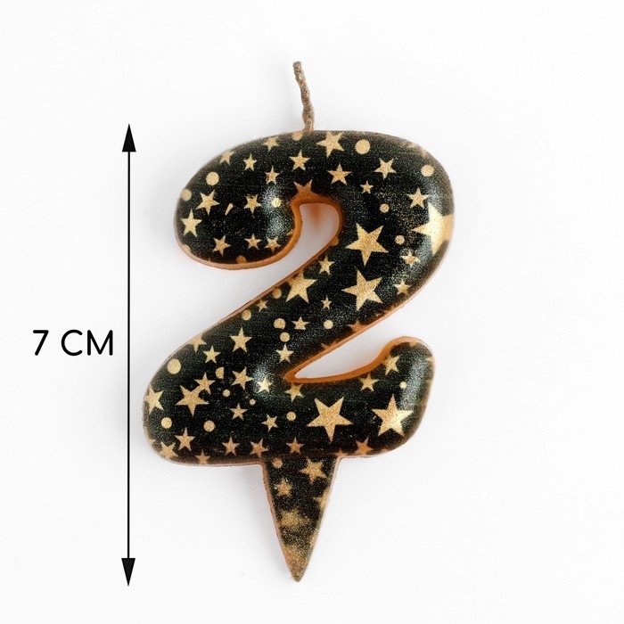 Свеча в торт "Саната", цифра "2", черная с золотыми звездами, 5,5 см