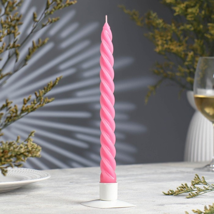 Свеча витая, 2,3х 24,5 см, 5 ч, 50 г, тёмно-розовая