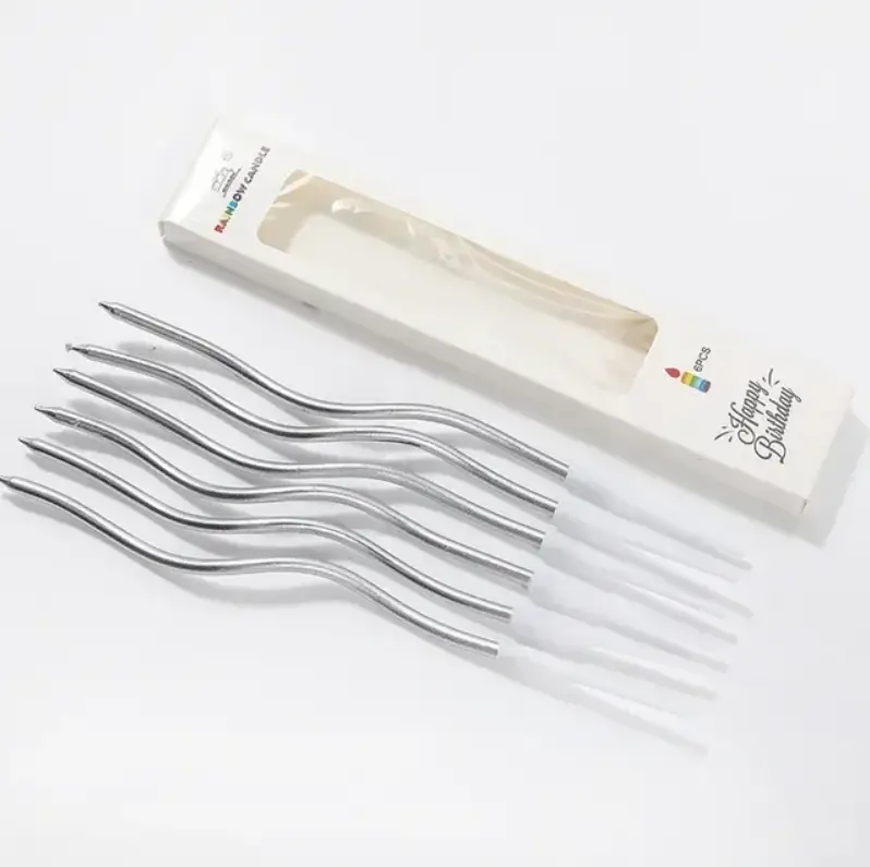 Серебристые свечи создадут загадочное мерцание, наполняя атмосферу волшебством. Они понравятся как взрослым, так и детям. Набор из шести длинных свечей станет отличным акцентом на фотографиях и видео, идеально подходя для фотосессий на помолвке, новоселье, юбилее, корпоративе или любой вечеринке. Красивые детские свечи добавят радости и эмоций, придавая вашему десерту особую торжественность. Длинные витые свечи добавят яркости и прекрасно дополнят ваше празднование.