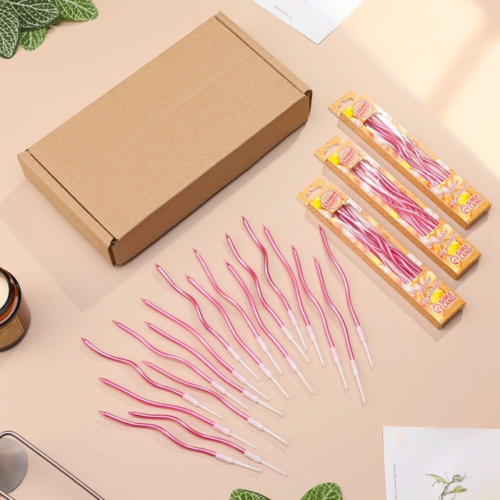 Свечи для торта витые "Серпантин",12 см, 18 шт, коктейльные, розовый блик