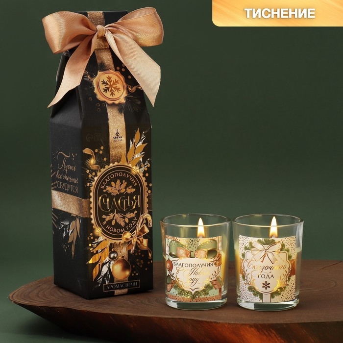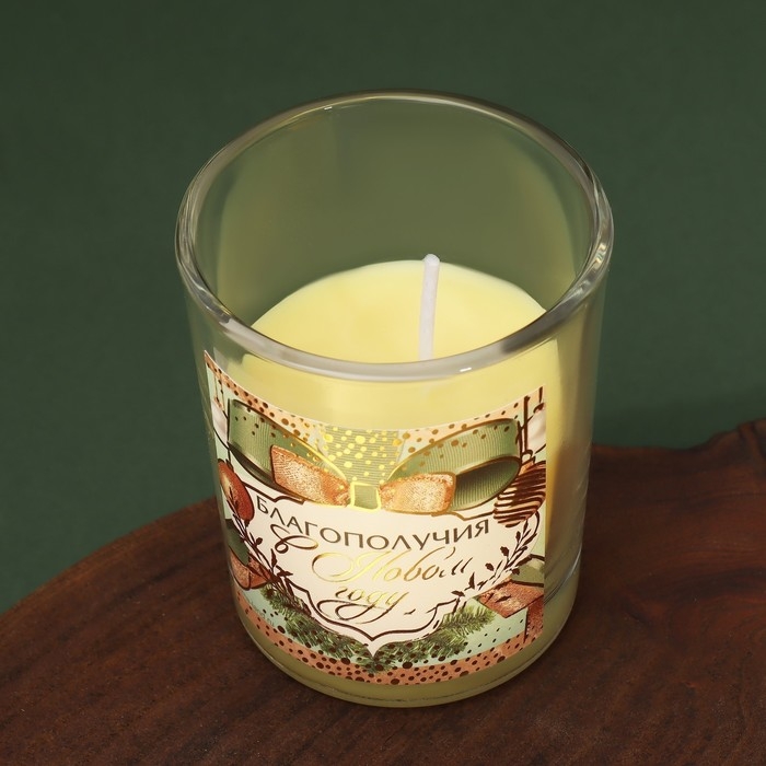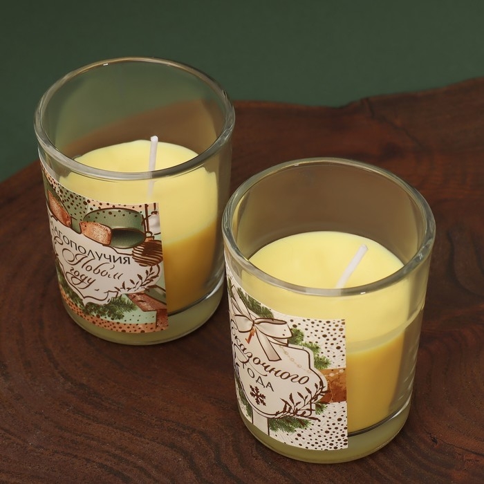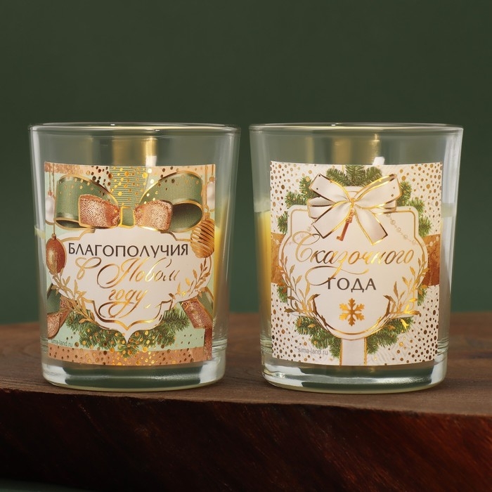 Свечи в стакане новогодние «Новый год: Благополучия в Новом году», набор, 2 шт., аромат еловые шишки