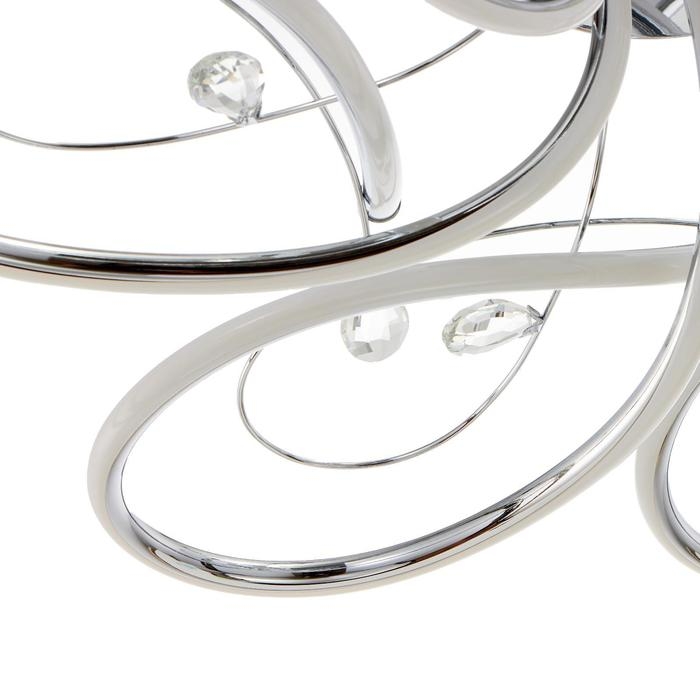 Изделие выполнено из качественного металла, силикона и светодиодов. Срок службы люстры в домашних условиях — 20 000 часов. Подходит для помещений с низкими потолками и для натяжных потолков. Осветит комнату площадью до 21 м².