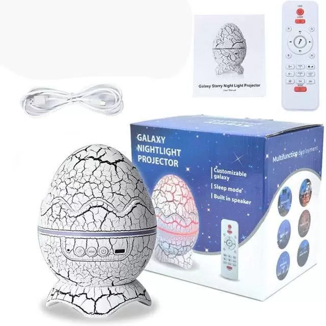 Детский ночник проектор Яйцо Дракона. Яйцо дракона с белым шумом подарит Вам и вашему ребенку удивительное путешествие в открытый космос или другую галактику. В 16 различных цветах данный проектор создаст эффект полного погружения в атмосферу звездного неба и полярного сияния. 19 типов белого шума для новорожденных помогут расслабиться и защитить сон малыша. Днем устройство может послужить декором и украшением для дома – современной игрушкой для детской комнаты, вечером - функциональным светильником или ночником для гостиной и спальни. Проектор звездного неба отлично подойдет в качестве детского подарка на день рождения, новый год, 8 марта и 23 февраля, рождество и другие семейные праздники. Также ночник будет приятно получить в подарок и взрослым (любимой девушке, маме, сестре, подруге или другу) -он поможет отвлечься от повседневных забот и создать подходящую атмосферу для любых событий. При помощи функции Bluetooth Вы сможете включить любые музыкальные композиции, подключив его к смартфону. Ночник-светильник работает от розетки, управляется пультом ДУ или кнопками на устройстве, и имеет функцию автоматического отключения по таймеру. Лазерный ночник-проектор позволяет устанавливать цвет и яркость как проекций, так и звёздное небо, скорость вращения изображений, а также громкость мелодии и белого шума. Благодаря современному механизму, он позволяет проецировать качественные изображения как в маленьких, так и в больших помещениях. Использование включенного ночника под крышкой подарит приглушенный свет и красивые светящиеся очертания на Вашем "яйце динозавра". В комплекте к устройству идут все необходимые комплектующие и инструкция. Проэктор сертифицирован и безопасен для использования. Будем рады, если Вы выберите наши ночники в качестве оригинального новогоднего подарка любимым либо просто подарка без повода.