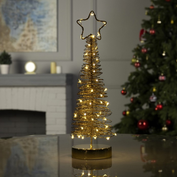 Светодиодная фигура «Ёлка плетёная» 10 × 38 × 10 см, металл, батарейки АААх3 (не в комплекте), свечение тёплое белое