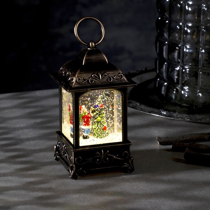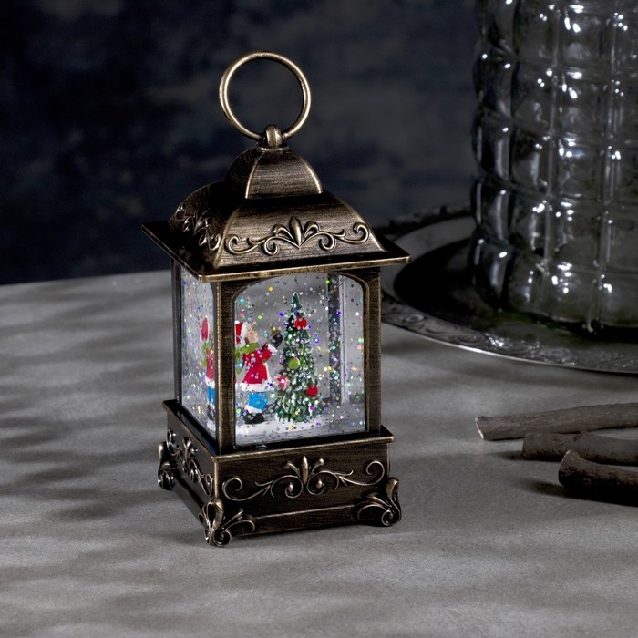 Светодиодная фигура «Фонарь с ребёнком и ёлкой» 7.5 × 13.5 × 7.5 см, пластик, блёстки, батарейки АААх3 (не в комплекте), свечение тёплое белое