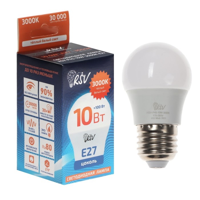 Светодиодная лампа RSV-P45-10W-3000K-E27