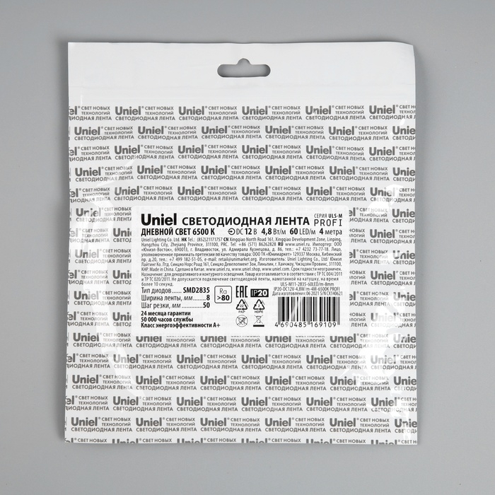 Светодиодная лента Uniel PRO 12В, SMD2835, 4 м, IP20, 4.8Вт/м, 60 LED/м, 6500K